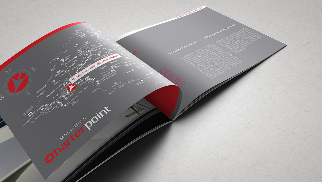 New visual identity and messaging for Charterpoint, a fast expanding yacht charter company based in Mallorca, Spain. The company logo incorporates a ‘maritime compass’, which also functions effectively as a standalone marque – pointing in a south westerly direction it quirkily communicates Charterpoint’s location on the island!