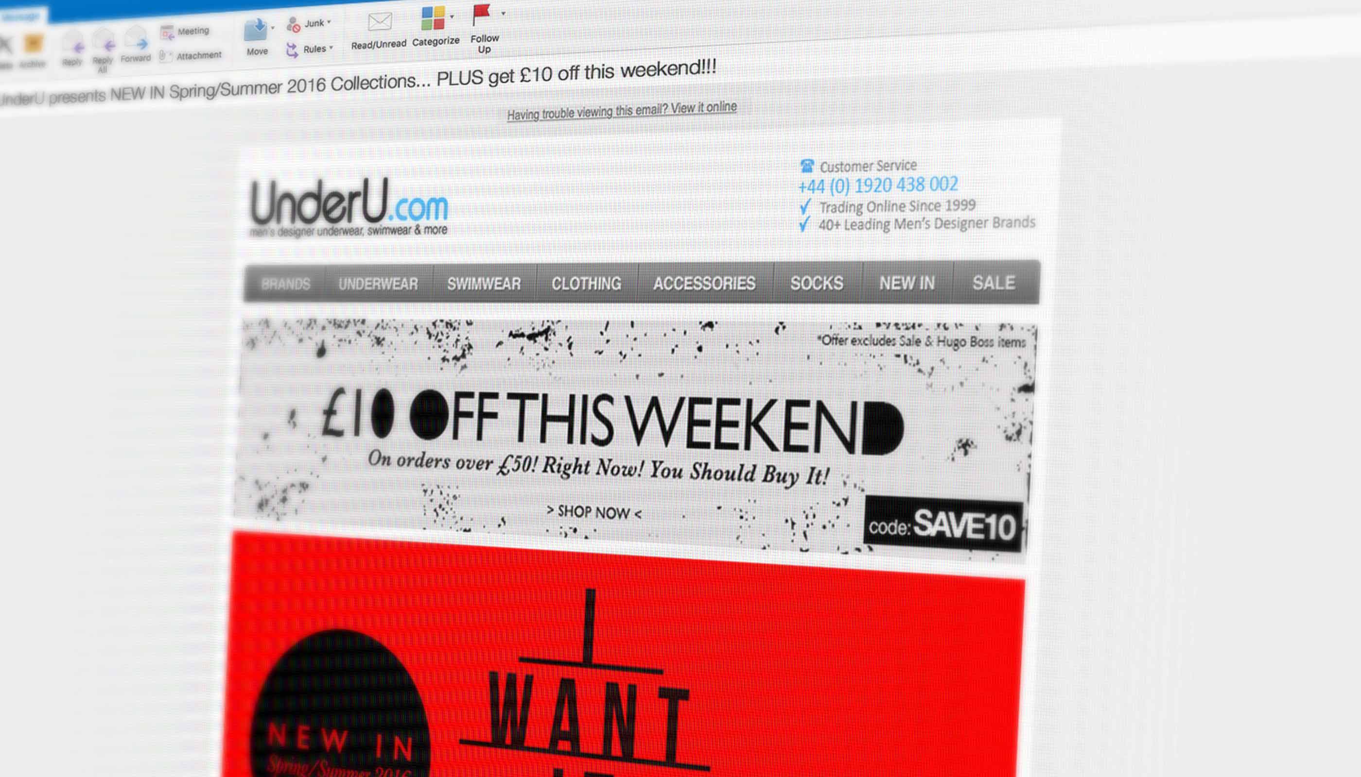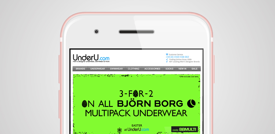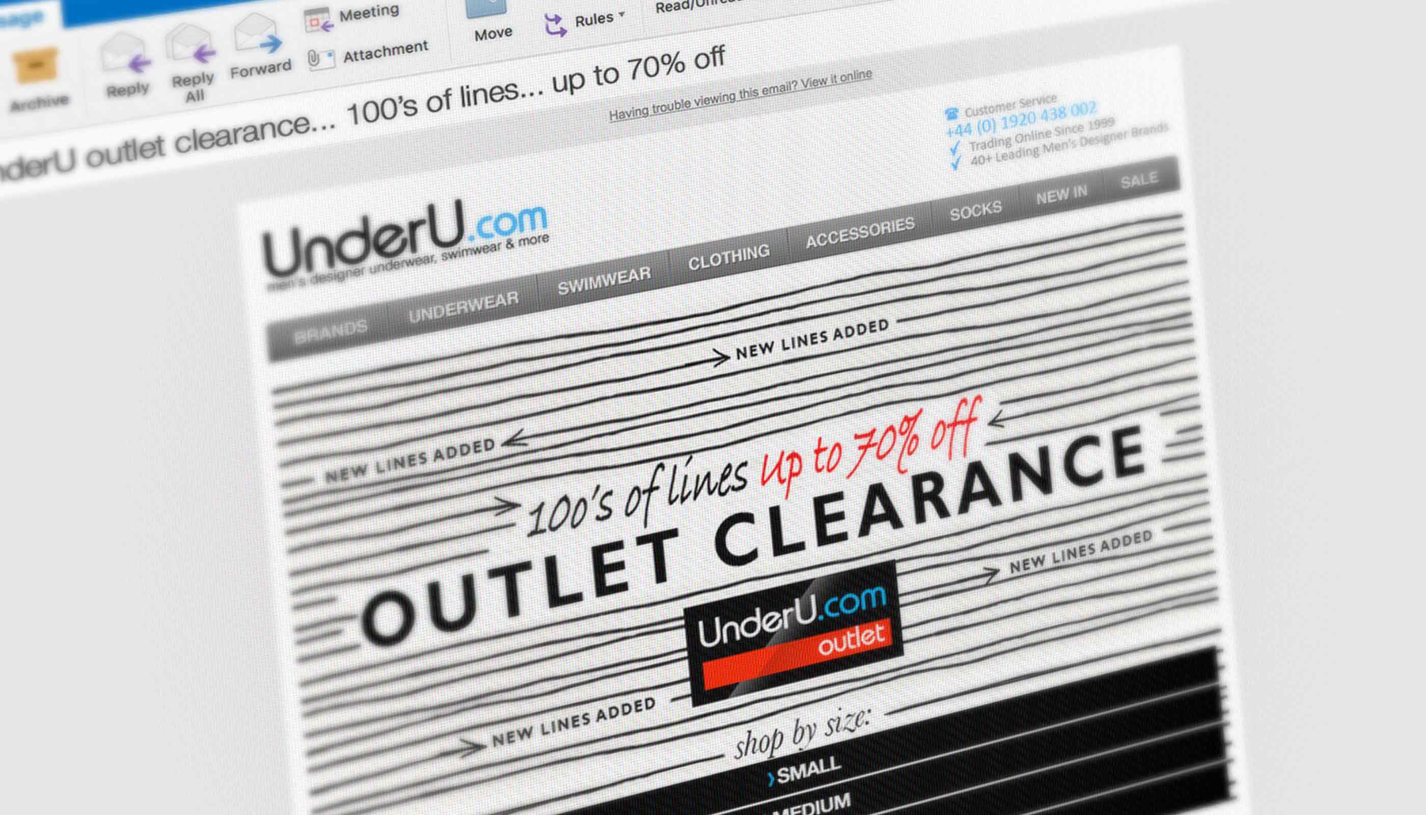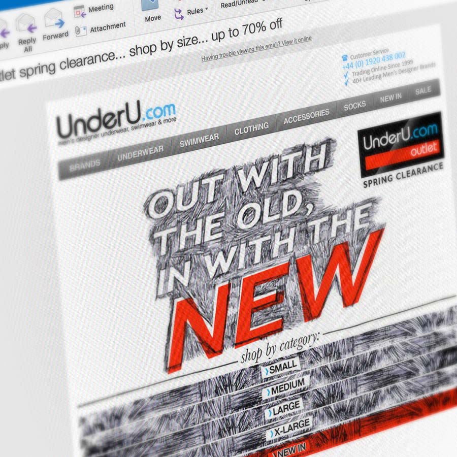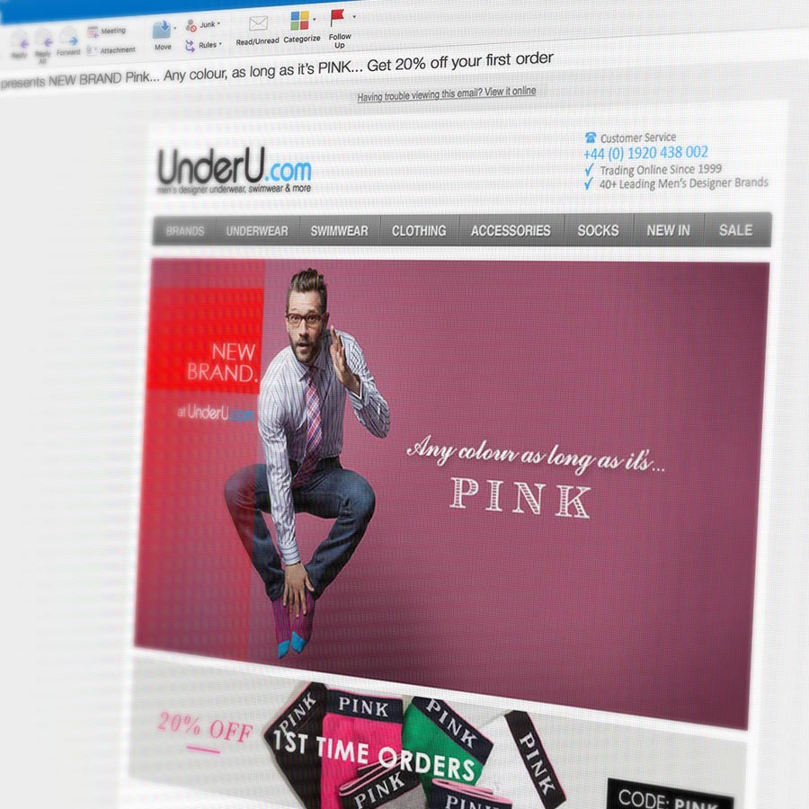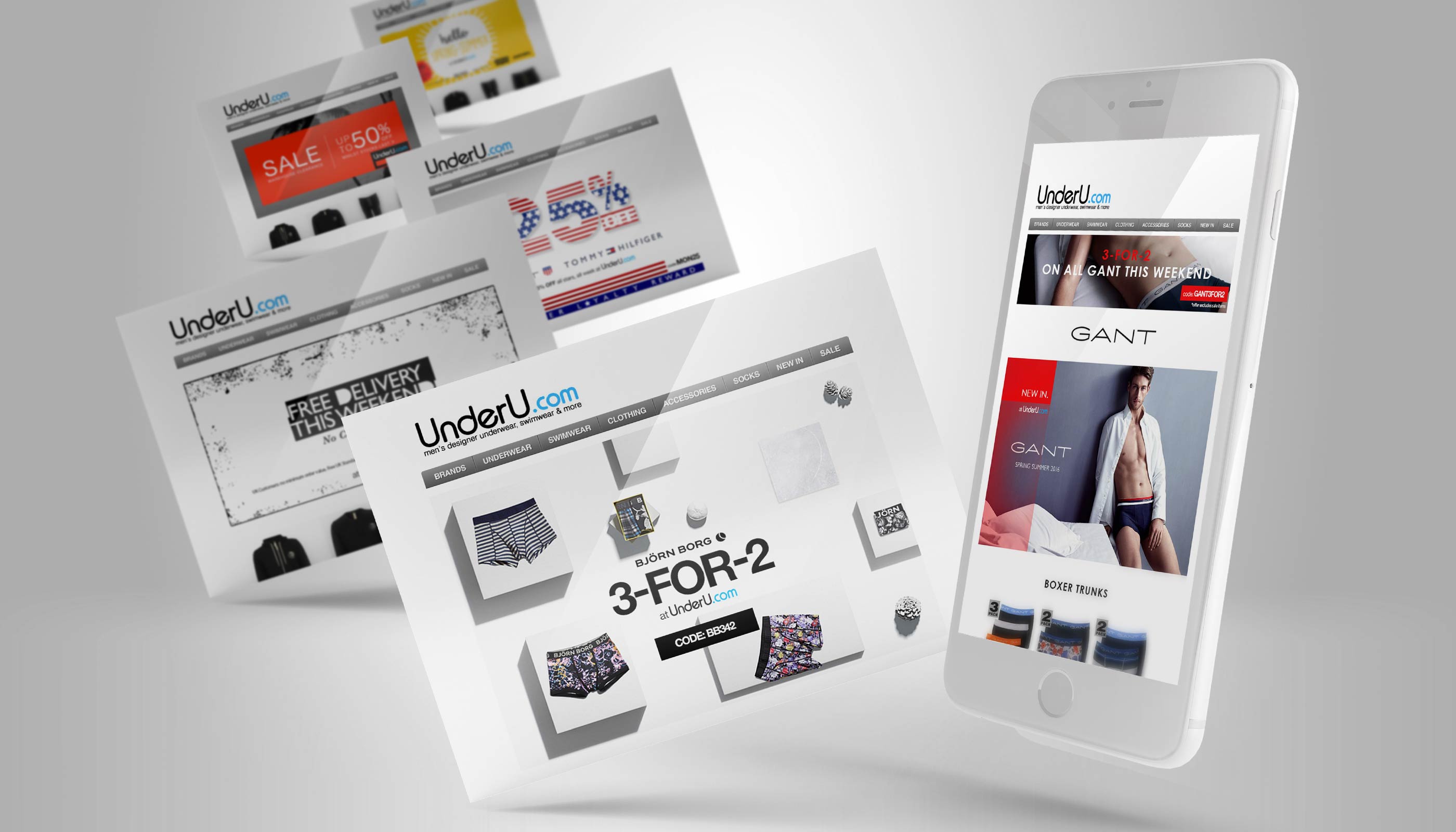 Weekly email marketing encompassing cross platform brand promotion and message making for UnderU, UK online retailer of men’s designer underwear, swimwear & accessories.