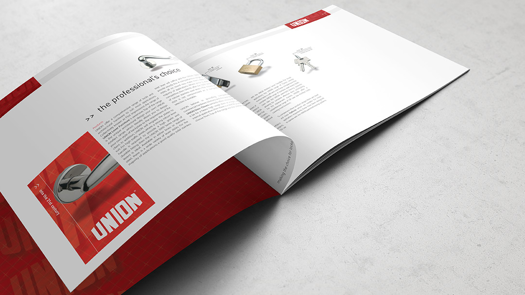 New visual identity and product brochure for Union, one of the best known names in the locking and door furniture industry and part of the Assa Abloy group - the world’s largest lock manufacturer.